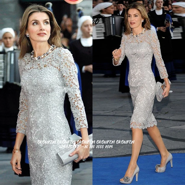 Короткое платье для матери невесты, свадебное платье-футляр для свадебной вечеринки, серебряные кружевные платья с длинным рукавом для гостей свадьбы, коктейльные платья знаменитостей