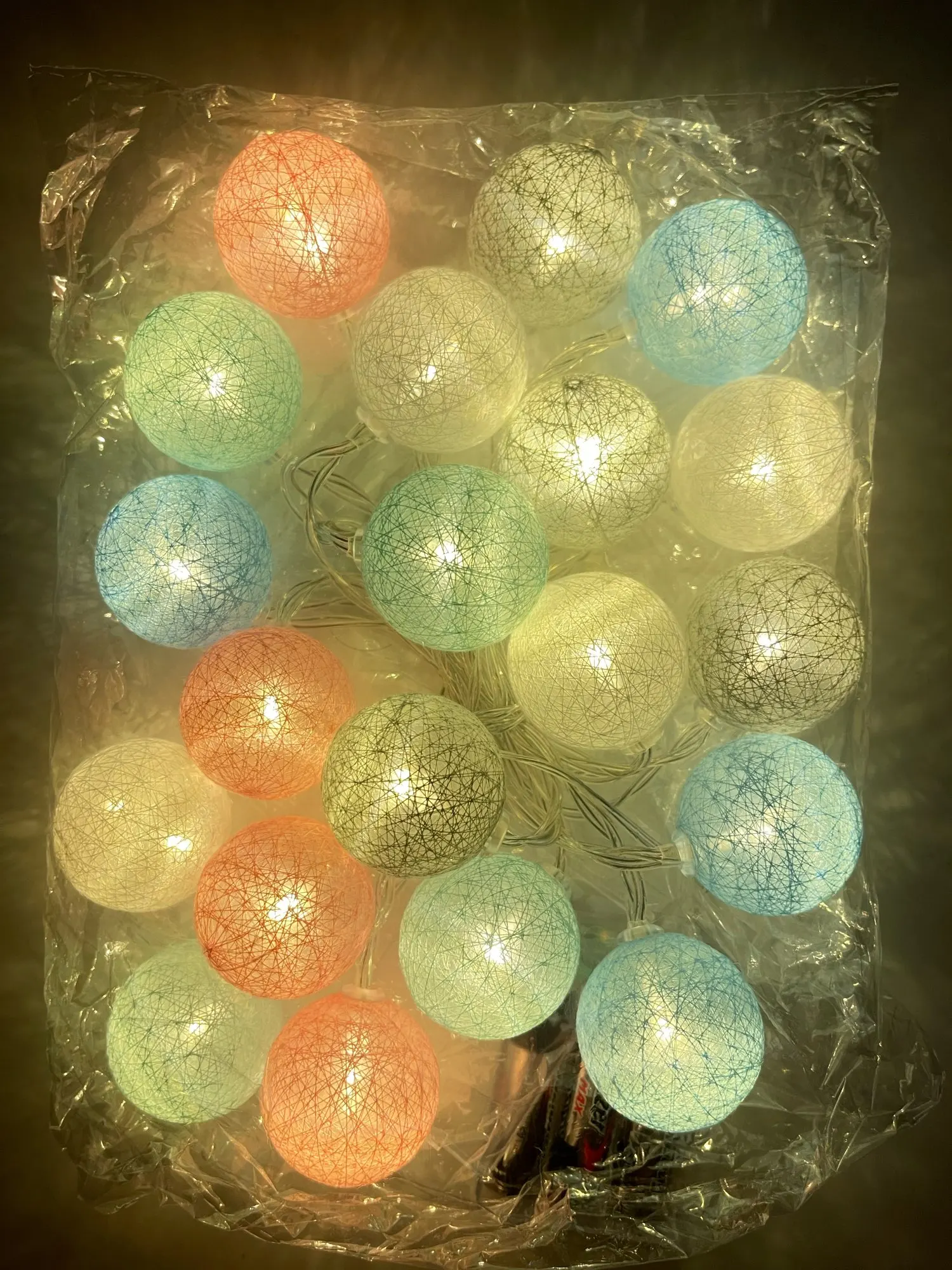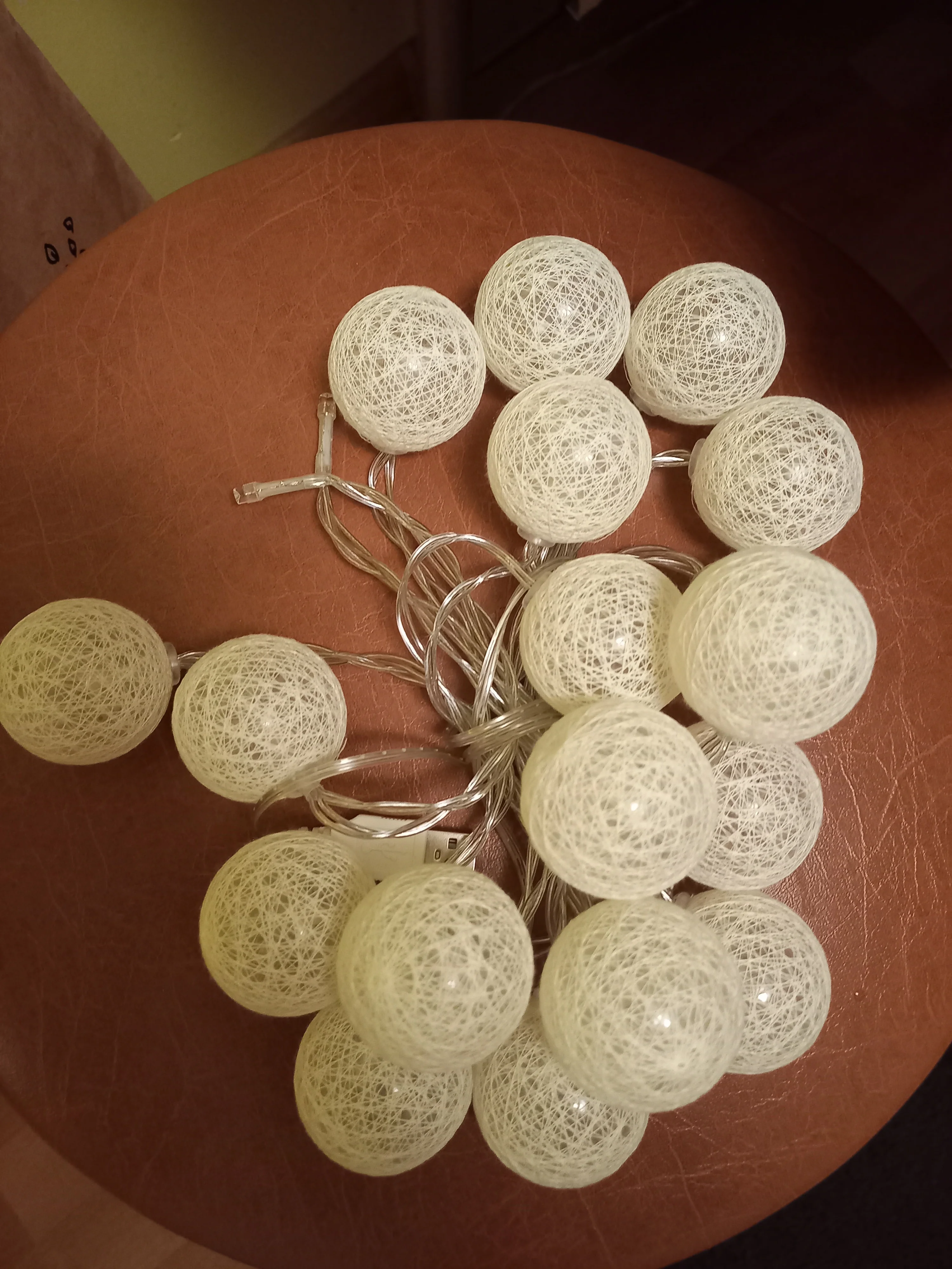 Товар выглядит как на фото, только очень жаль что упокоена был плохо для транспортировки… пришел один шар у гирлянды сломан и к сожалению его никак не починить и заменить нечем… очень жаль!
