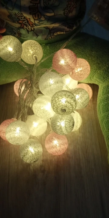 Красивая гирлянда, размер на фото кажется больше, но мне поменьше даже больше нравятся. Единственный минус это упаковка. Шары хрупкие и два сломаны. Продавьцу нужно получше упаковывать такой товар