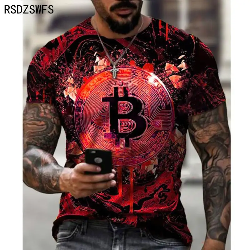 Модная футболка с 3D-принтом биткоина для мужчин, летняя уличная одежда, повседневные свободные топы с круглым вырезом и коротким рукавом