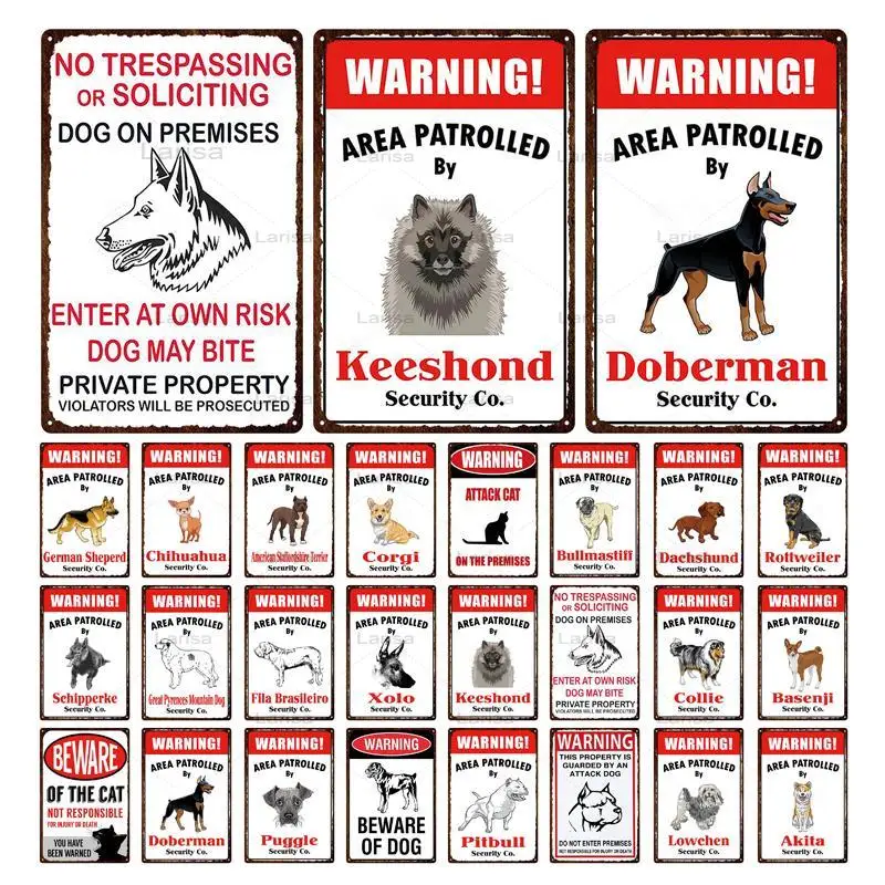 Предупреждение: защищен немецким овчагом. Винтажный металлический з...