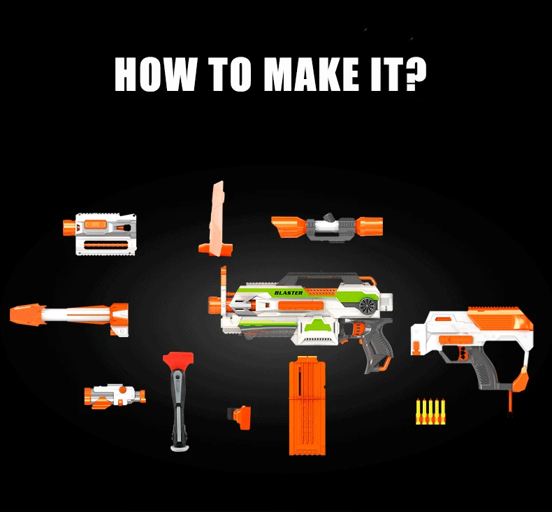 Набор аксессуаров для модификации игрушечного пистолета Nerf N-strike Elite Series, глушитель, хвостовик, фонарик, универсальная модель