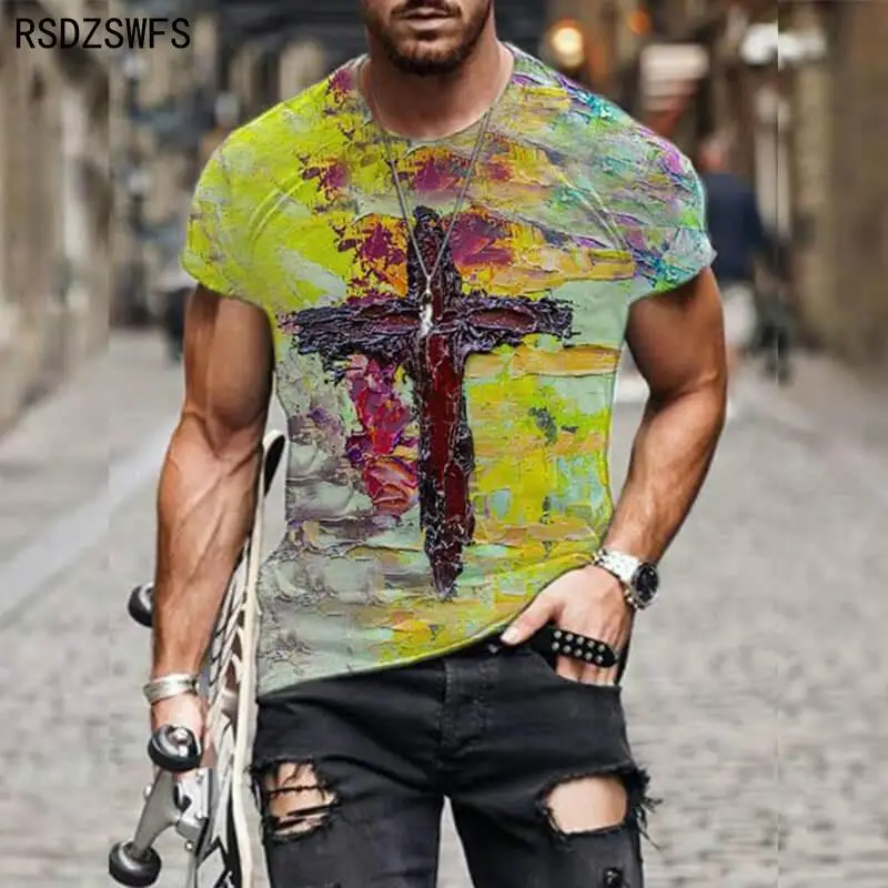 Футболка мужская с 3D-принтом Иисуса Христа, повседневная универсал...
