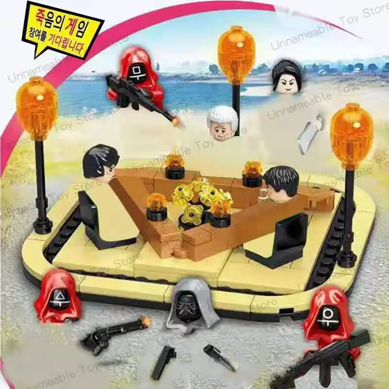 Строительные блоки из корейской игры кальмар, триллер, страшные фигурки с подвесом, аксессуары, оружие, детские игрушки сделай сам, коллекционные подарки, Лидер продаж
