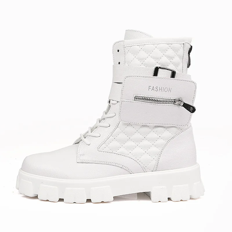 Кожаные женские ботильоны, модная мотоциклетная обувь на платформе,...