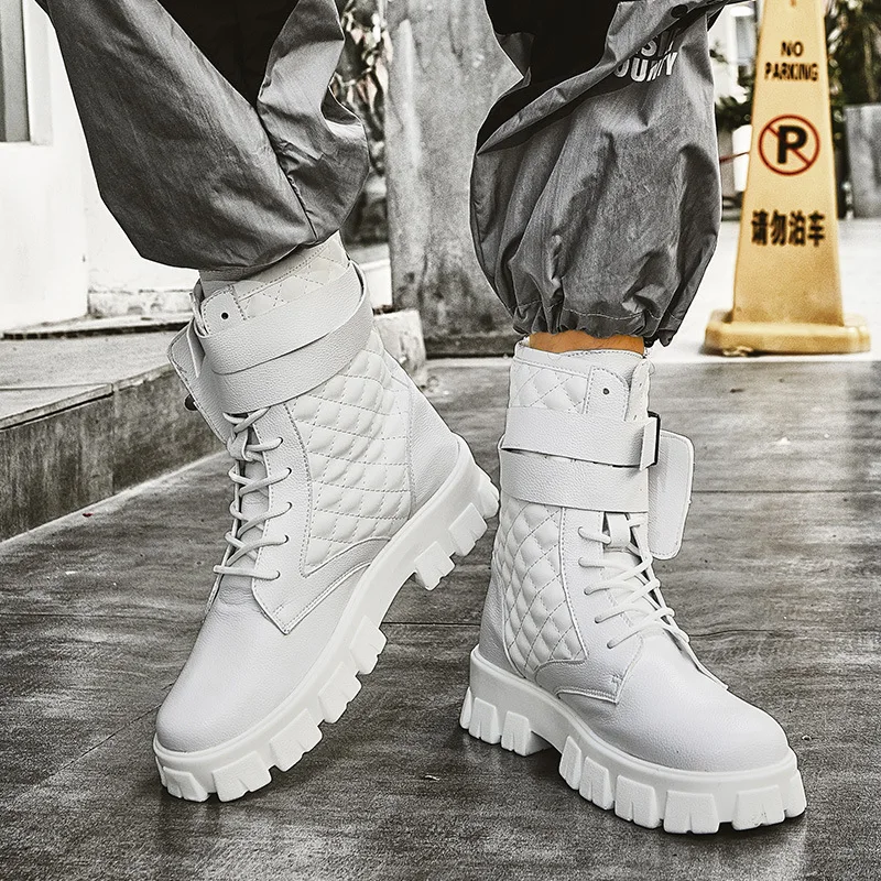 Уличные кроссовки в стиле хип-хоп, танцевальные повседневные ботильоны из искусственной кожи, Классические высокие ботинки со шнуровкой, мужские кроссовки