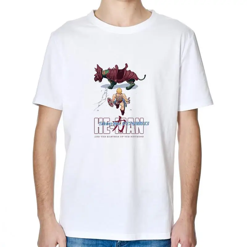 Футболка MOTU He Man с кариатурой сражение с Котом, Мастера Вселенной, футболки, топы, футболки, мужская одежда в стиле Харадзюку