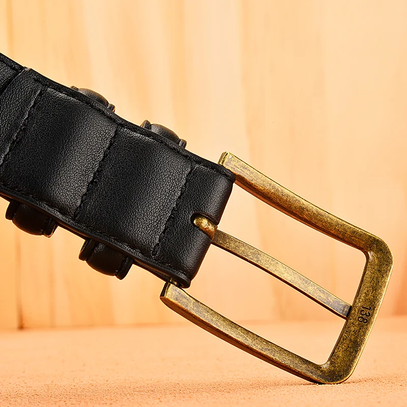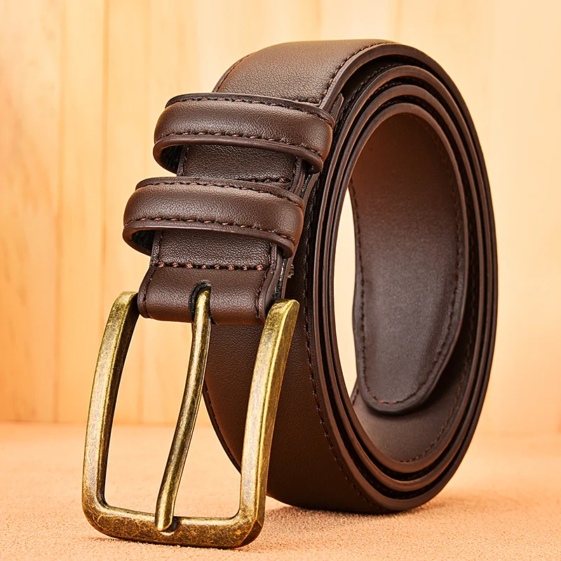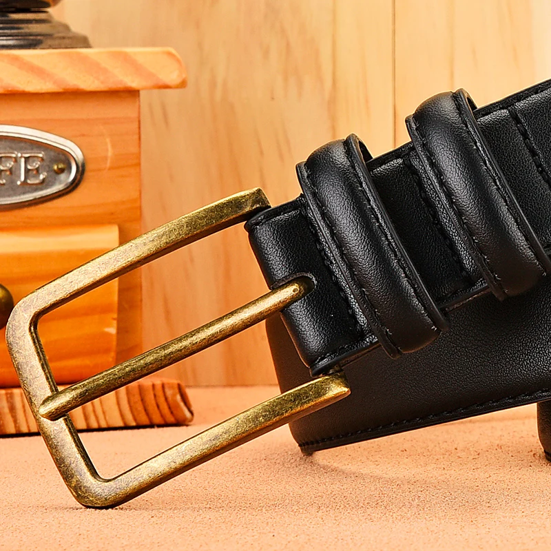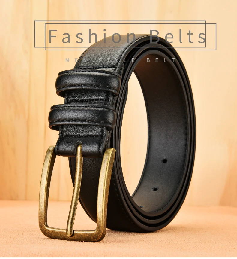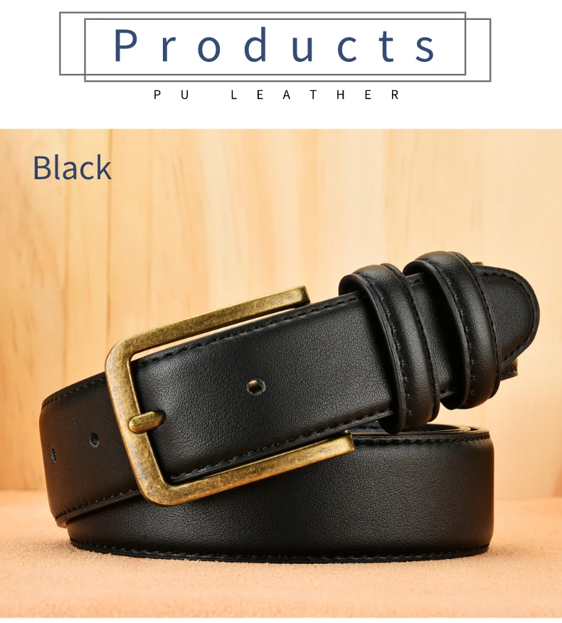 Мужской кожаный ремень, античная бронза, винтажная пряжка, две петли, роскошный мужской пояс, черный пояс из полиуретановой кожи для джинсов