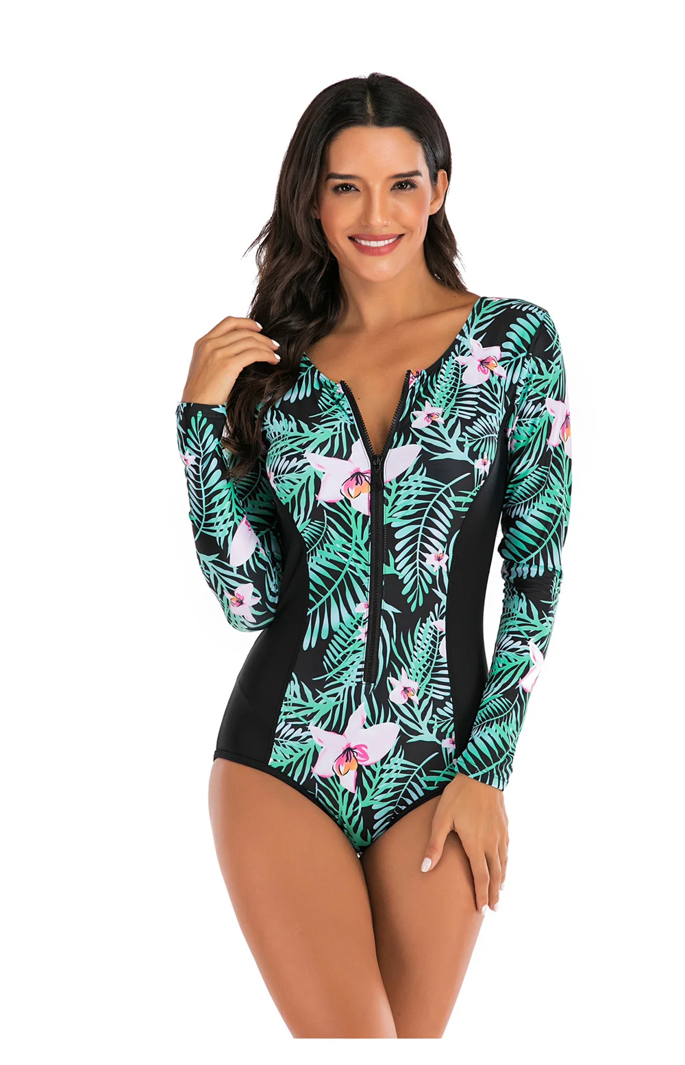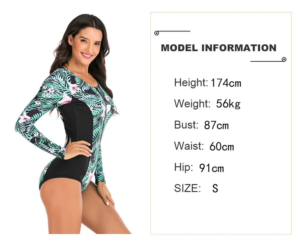 С Длинным Рукавом Рашгард для женщин, с рисунком, купальники молния...