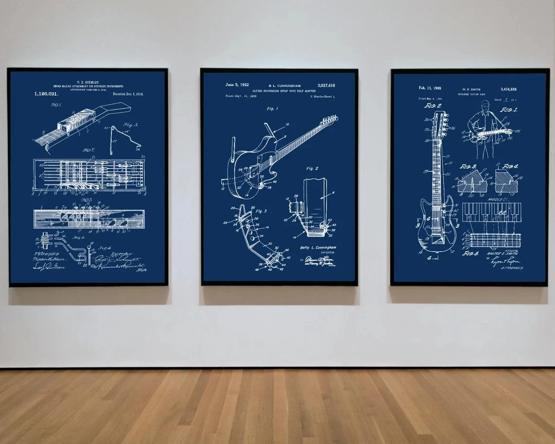 Группа патентов для гитары, набор из 3, плакат для гитары, декор для музыкальной комнаты, подарок для музыканта, гитарное искусство