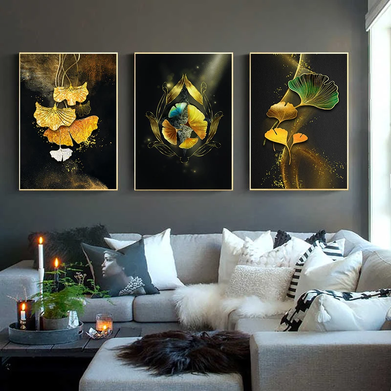 Роскошные абстрактные Золотые листья гинкго и фотообои с рисунком, настенные художественные картины, постеры для гостиной, домашний декор