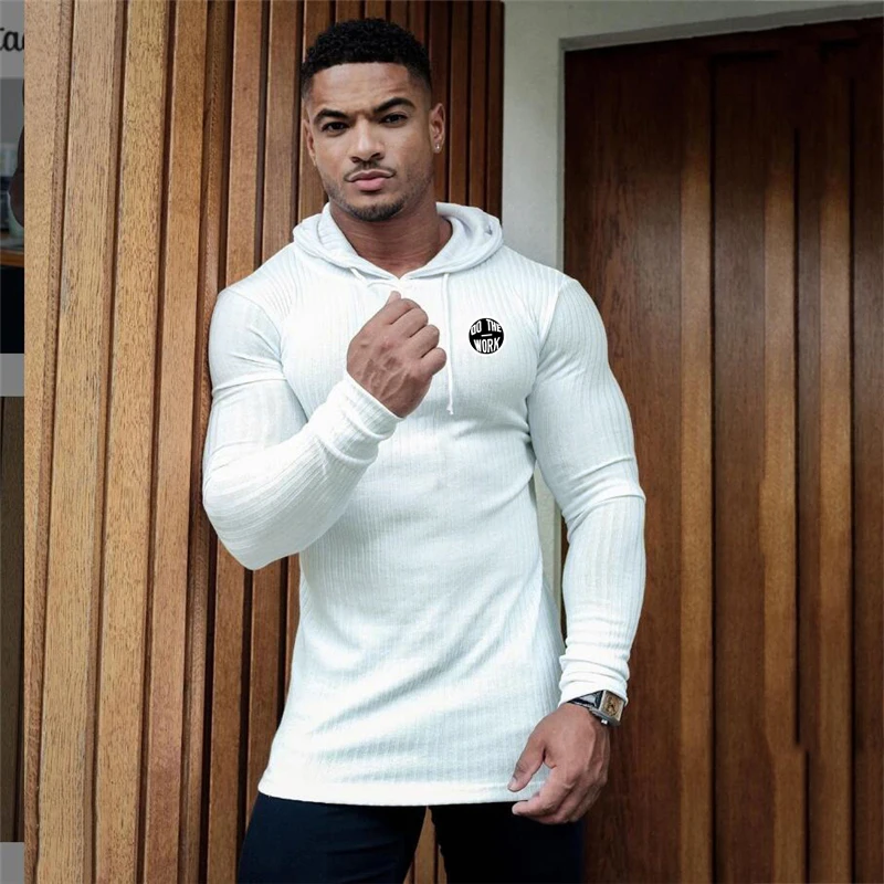 Осенняя Модная трикотажная футболка с капюшоном, мужские облегающие свитера, вязаная одежда, мужские пуловеры с длинными рукавами, футболки для мужчин, для фитнеса, Pull Homme