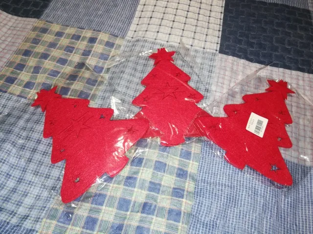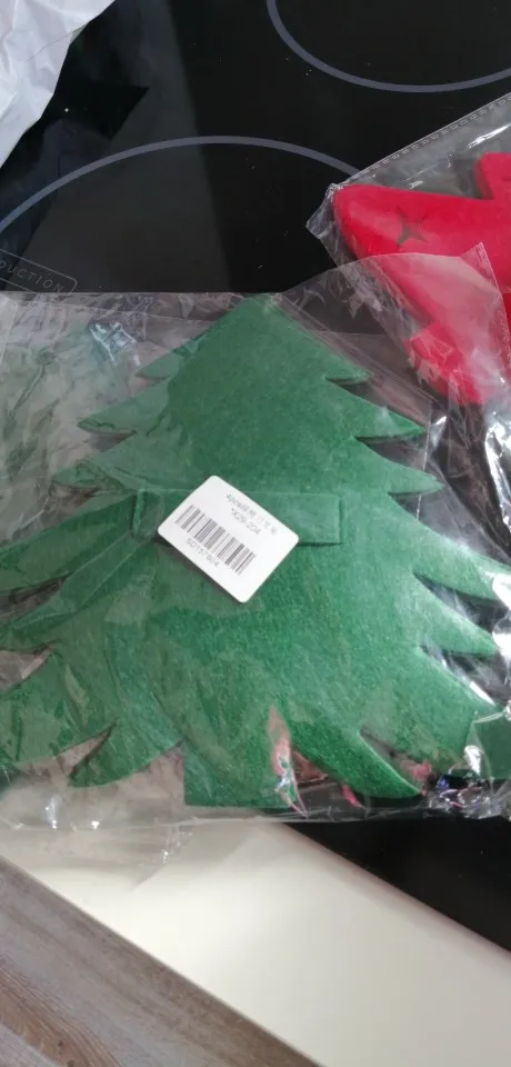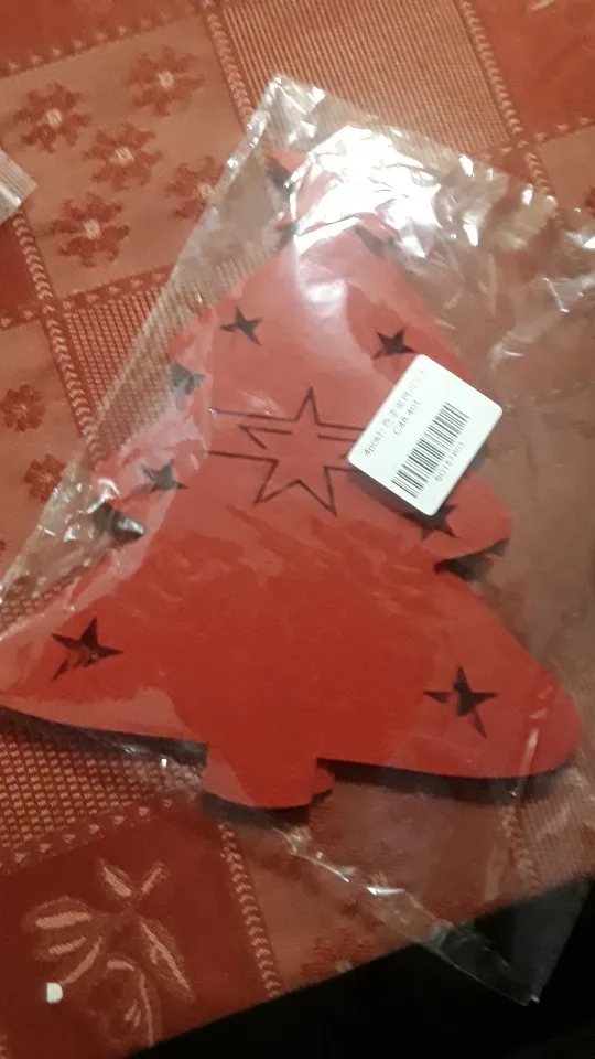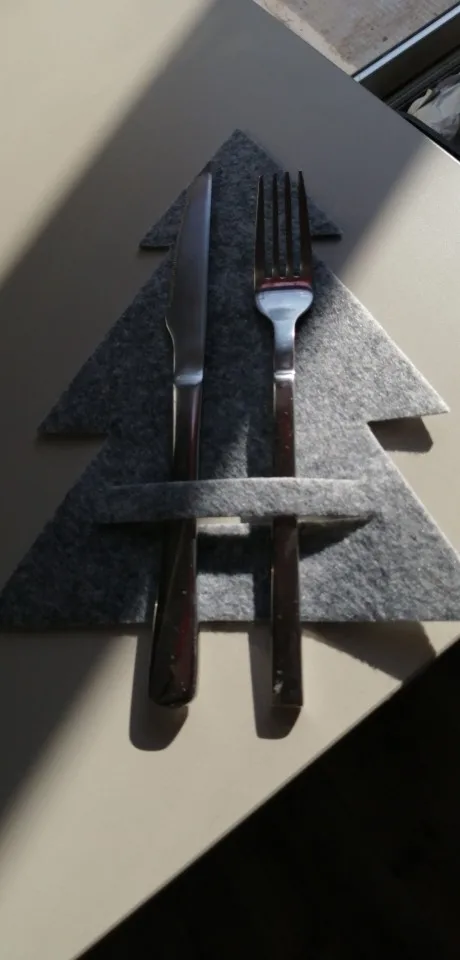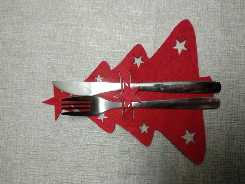 Когда то я заказывала подобную подложку под приборы, в форме снеговика. Она быда намного меньше. Поэтому когда увидела эти огромные елки сначала даже подрасстроилась. А потом пришла в восторг. Никакого бряцанья посуды о стол. Вырезаны аккуратно, фетр довольно плотный, постороннего запаха нет. Пришло в общей посылке.