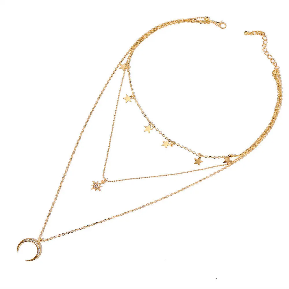 Короткая ключица в стиле Панк Золотая Многослойная ожерелье с Луной...