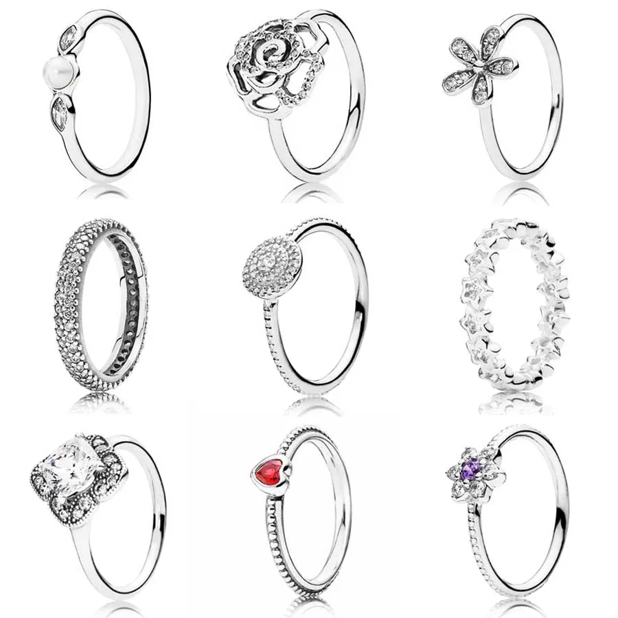 Starshine составное блестящее элегантное кольцо с округлой розой вечное цветочное кольцо подходит для серебряного кольца стандарта Pandora DIY ювелирные изделия