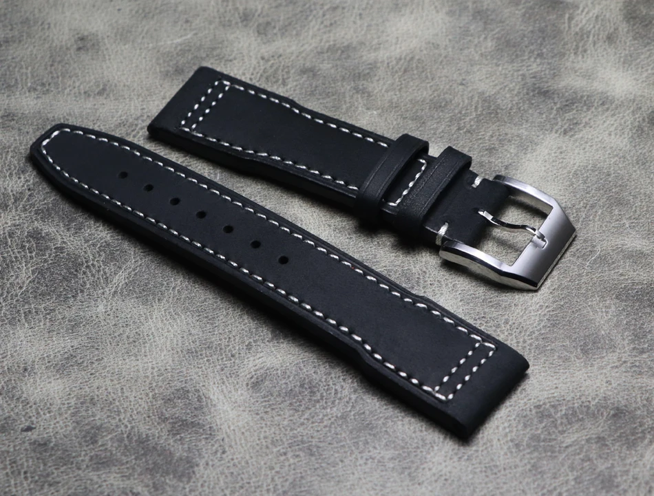 20 21 22 мм черный ремешок для наручных часов ручной работы мужской ремешок из натуральной кожи Ремешки для наручных часов аксессуары для iwc серии