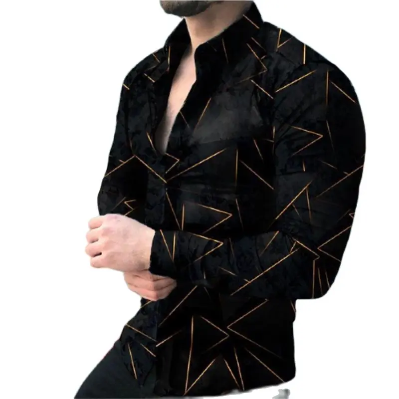 Мужская однобортная приталенная рубашка, Повседневная деловая рубашка с длинным рукавом, отложным воротником и принтом, 2022