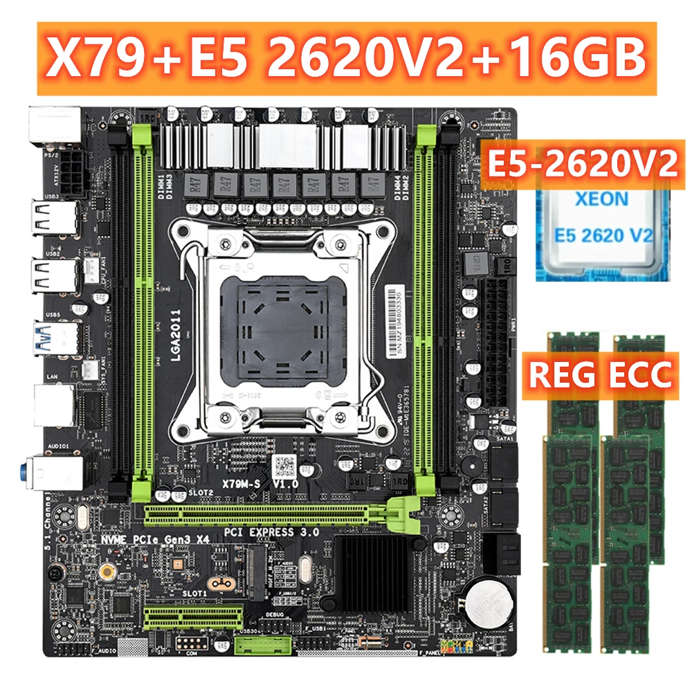 Комплект материнской платы X79 Lga2011 Combo Xeon E5-2620 V2 CPU Set DDR3 16 ГБ Sever память 1333 МГц ECC REG LGA 2011 E5 2620v2