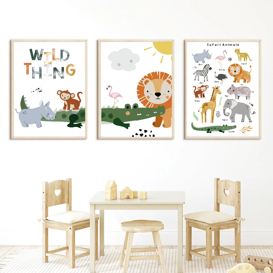 Джунгли дикие животные Лев слон жираф детская скандинавские плакаты принты настенные художественные картины на холсте для детской комнаты декорМатериал: экологически чистый хлопокХарактеристика: солнцезащитный, водонепроницаемый, никогда не выцветает