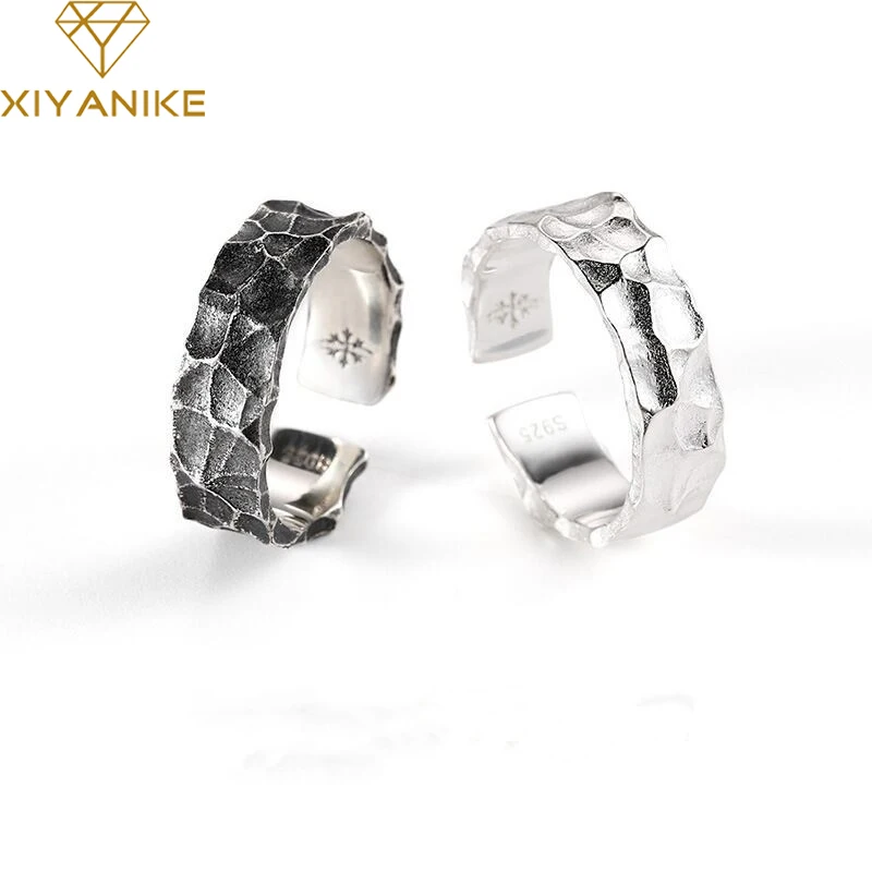 XIYANIKE, серебряный цвет, Корея 2021, Винтажное кольцо с текстурой камня для женщин и мужчин, модное состаренное украшение для вечеринки, парный подарок