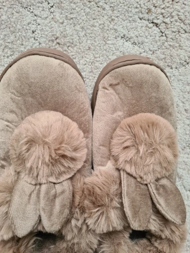 Хорошие тапочки. Упакованы были просто в тонкий почтовый пакет, удивляюсь, как их довезла почта в сохранности. Доставка быстрая - 15.11 заказала, 29.11 пришли на почту. Продавец отправил сразу! Мягкие, мех подрасправится - будет ещё лучше. Обратите внимание: очень сильно маломерят. Я ношу 38 русский размер, 24,5см стопы. Заказала здесь 40-41, они впритык! Для сравнения на фото розовые тапочки 39го размера (покупала в Магните). берите на 2 размера больше. Подошва толстенькая, ткань к ним пришита, не проклеена. Теплые. Ровные ушки и помпоны, приятно.