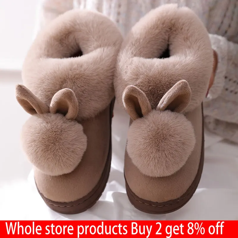 Женские домашние меховые тапочки, хлопковые пушистые тапочки на плоской подошве с кроличьими ушками, Симпатичная теплая плюшевая обувь, Осень-зима 2022