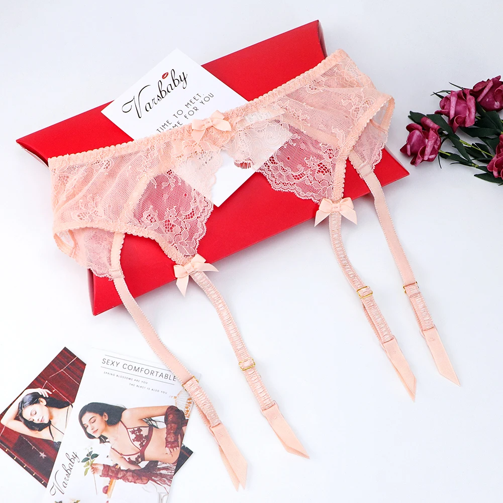 Комплект женского кружевного нижнего белья из бюстгальтера с поясом для чулок и стрингов