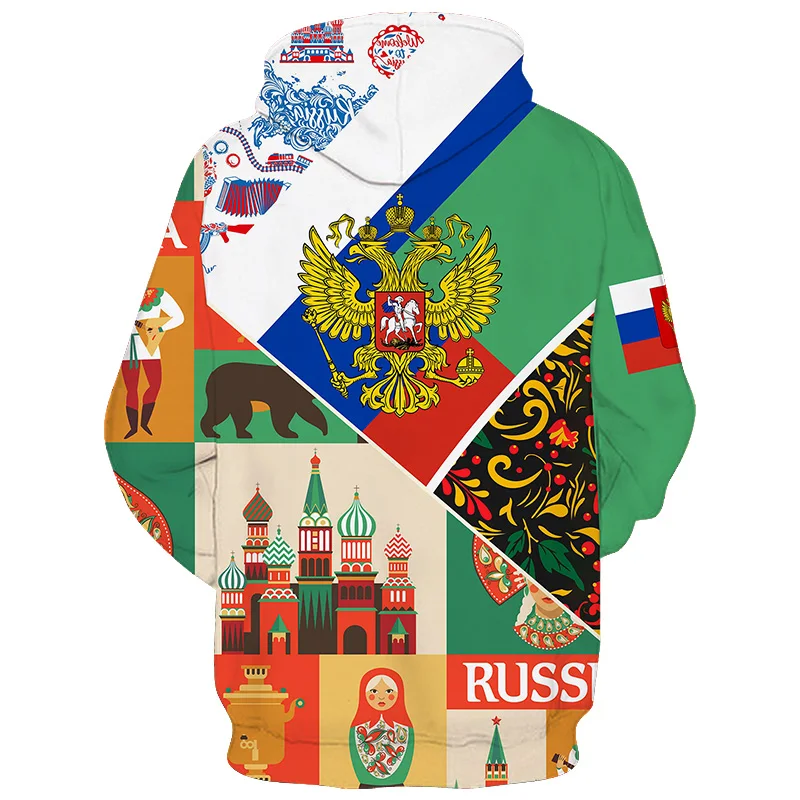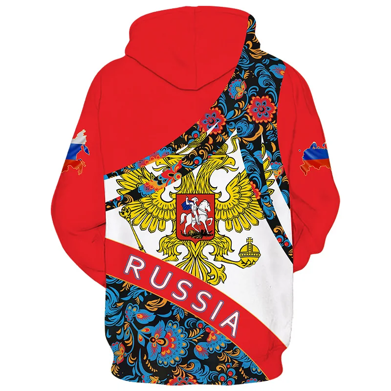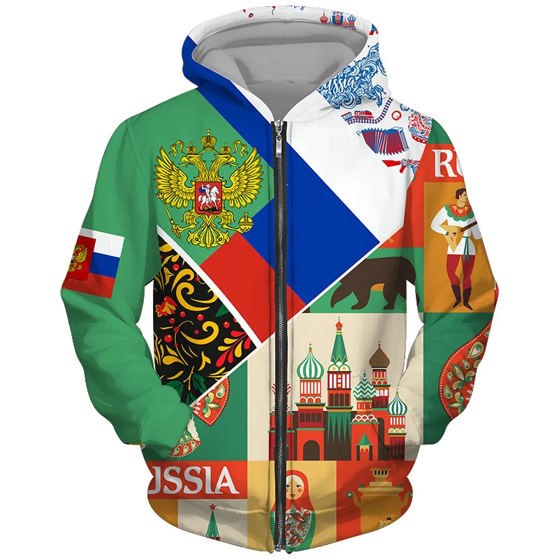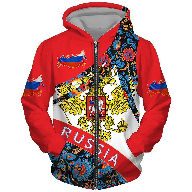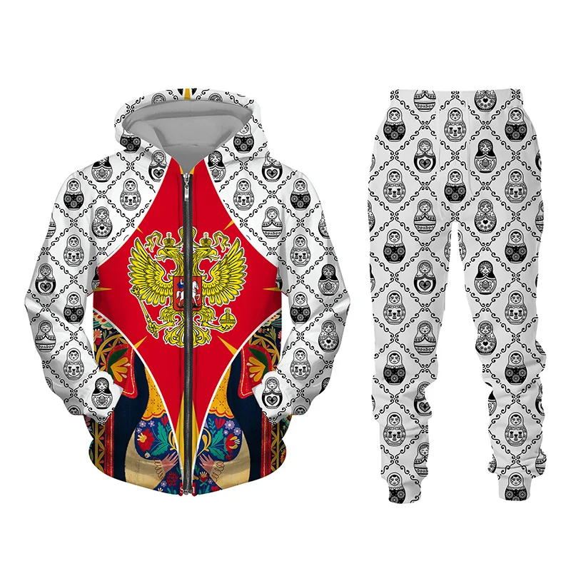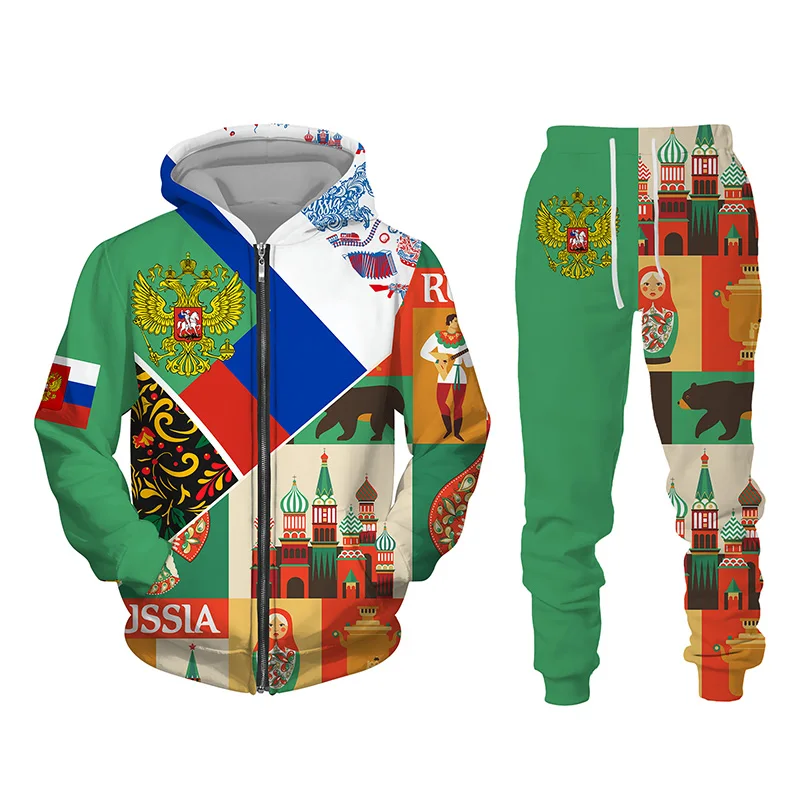 Спортивный костюм для мужчин и женщин, толстовка с капюшоном и штаны, с принтом российского флага, на молнии, комплект из 2 предметов, Осень-зима