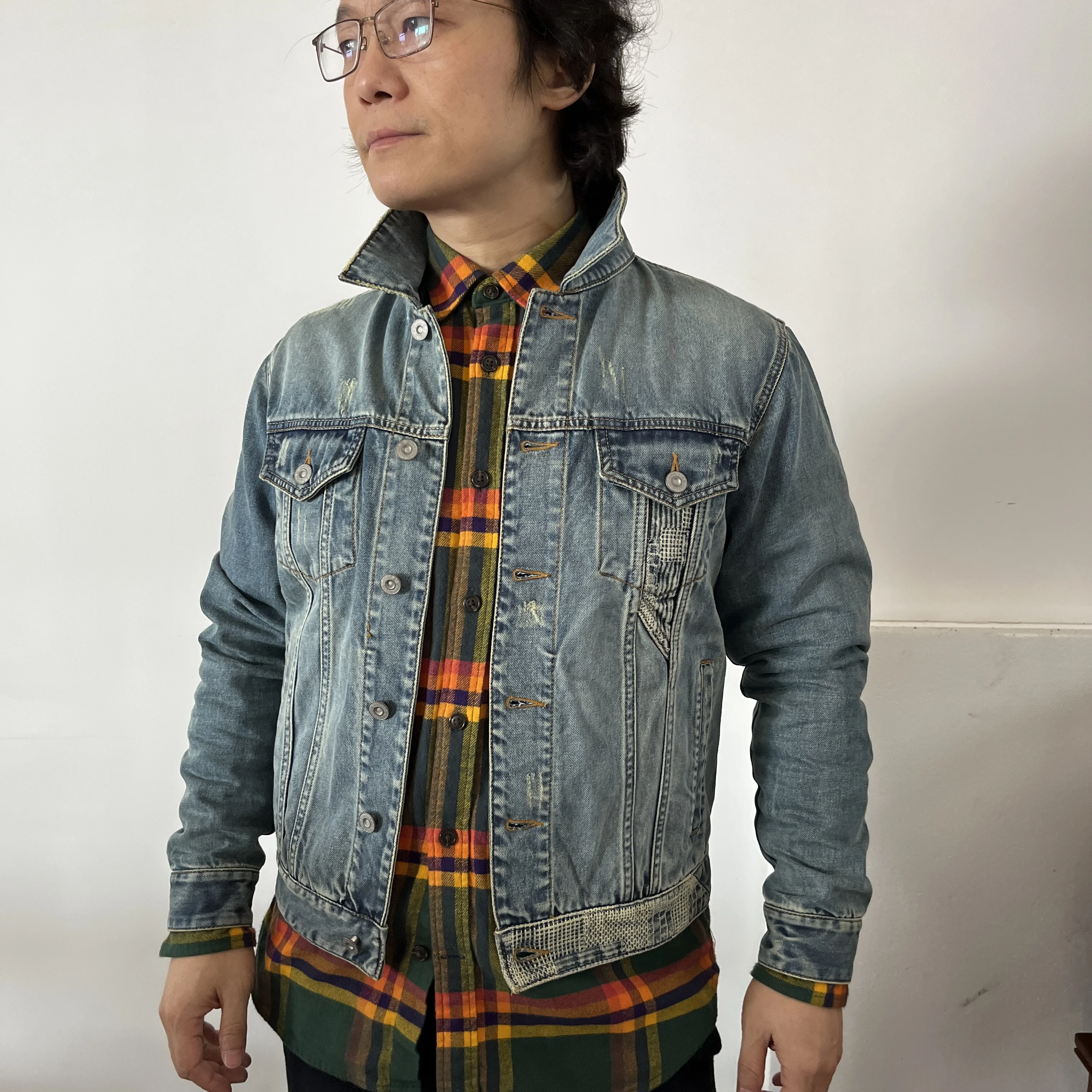 21W35, Азиатский Размер, штампованная винтажная куртка цвета индиго...