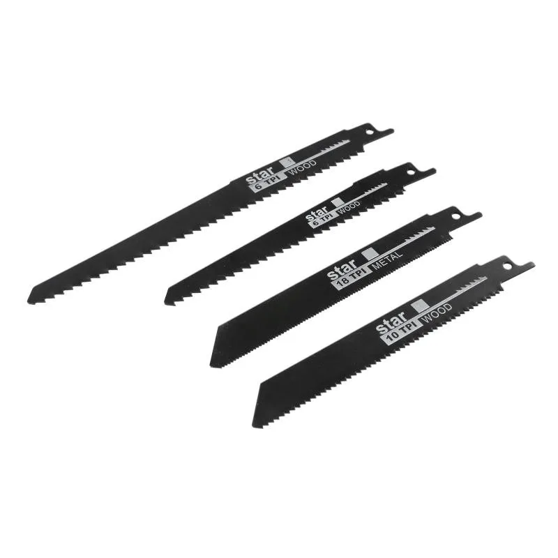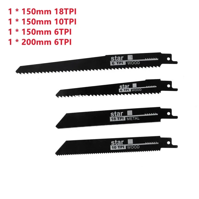 * Продукты включают 150 мм 18TPI металлическое возвратно-поступательное лезвие пилы, 150 мм 10TPI дерево возвратно-поступательное лезвие пилы, 150 мм 6TPI дерево возвратно-поступательное лезвие пилы и 200 мм 6TPI дерево возвратно-поступательное лезвие пилы, 1 шт. каждый.