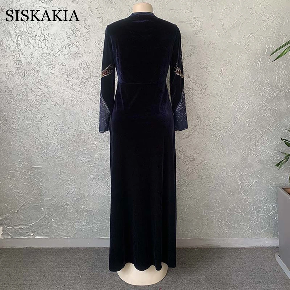 Siskakia, зимние платья для женщин, v-образный вырез, длинный рукав, этническая Африка, размера плюс стразы, Империя, качели, бодикон, макси платье, бархат