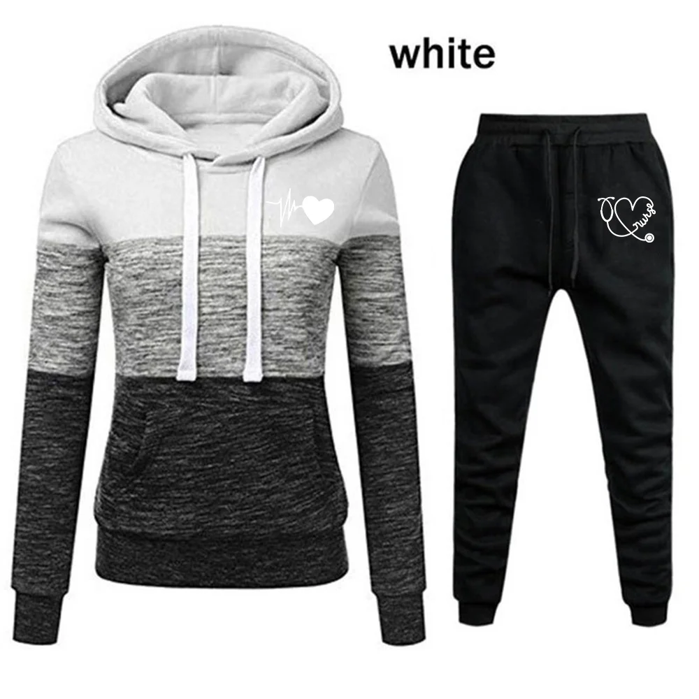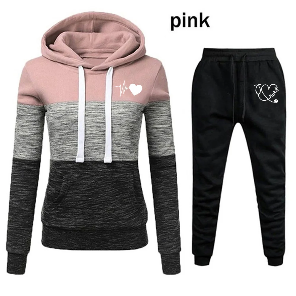 Модные женские спортивные костюмы, комплект из 2 предметов, осенне-зимние толстовки, Женская Полосатая цветная толстовка с капюшоном и брюки, женские спортивные толстовки для отдыха