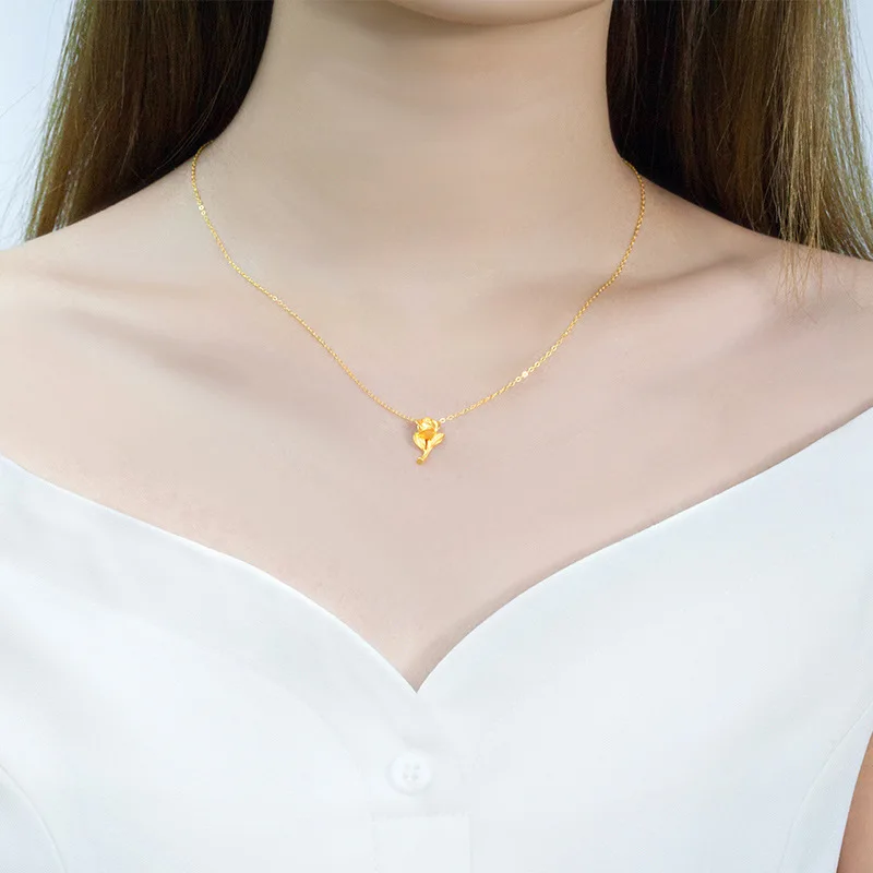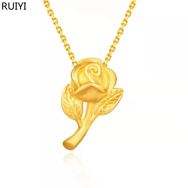 Ожерелье RUIYI из настоящего желтого золота 24 к 999 пробы с подвеской в виде цветка розы цепочка из чистого 18-каратного золота AU750 для женщин ювелирные изделия свадебный подарок