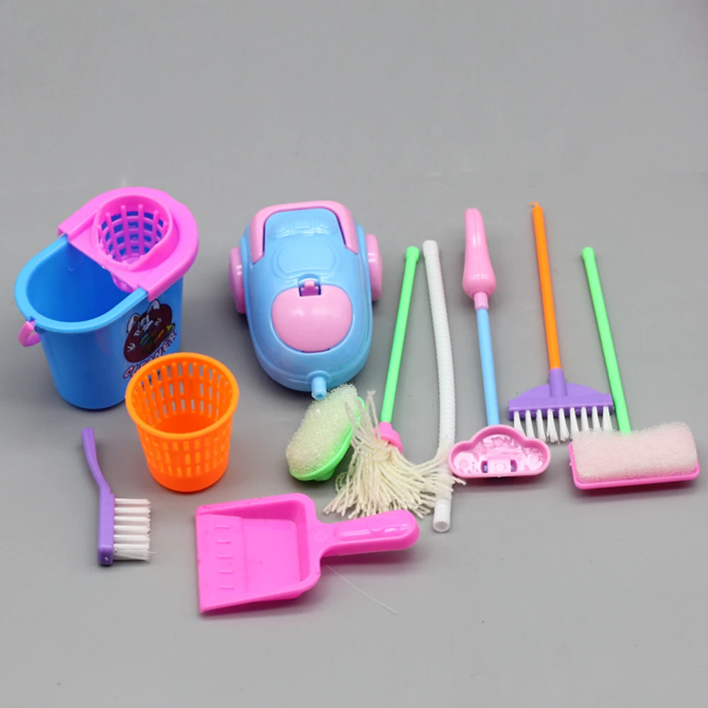 Аксессуары для кукол, реквизит, набор для уборки, детская игрушка для игрового домика для девочек, инструмент для имитации уборки для куклы Барби, 9 шт., детская развивающая игрушка