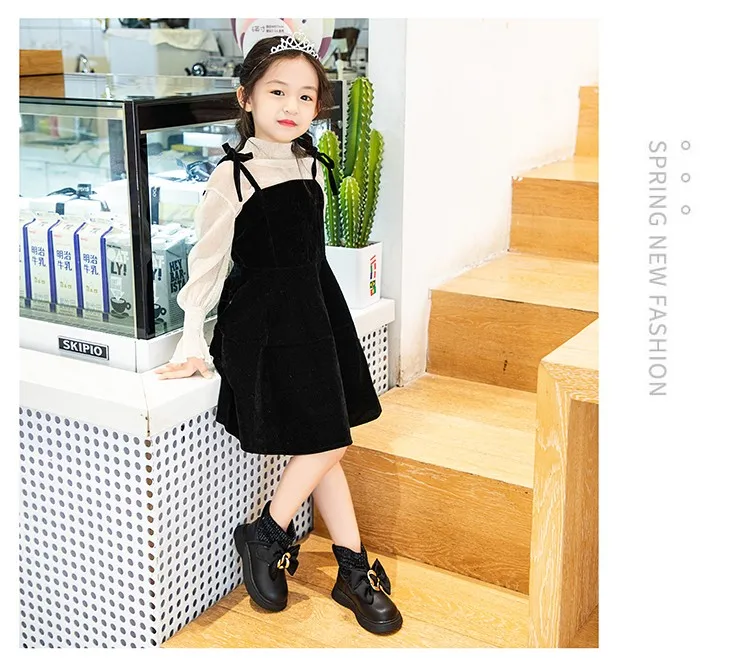 Детские длинные ботинки, модные дизайнерские черные ботинки из иску...