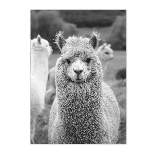 Плакат с альпакой, животное, холст, искусство, живопись, искусство на стену, принты с черной и белой ламой для украшения дома.