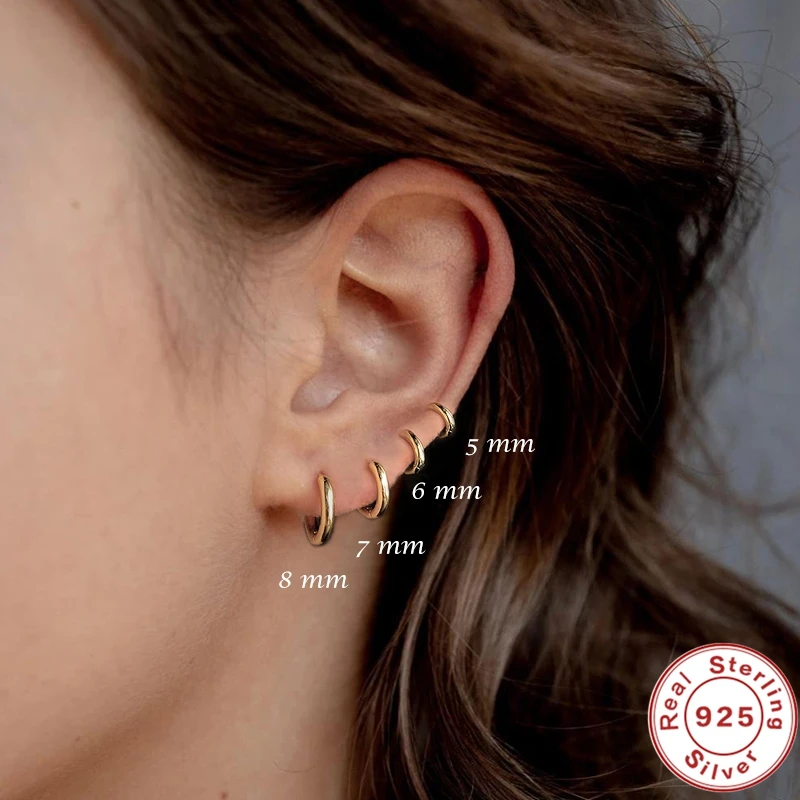 Автоклав 1 пара серебряные серьги 925 серебро 5/6/7/8/9 мм Серьги-кольца для женщин модные Huggies Серьги для свадьбы, ювелирное изделие, подарок