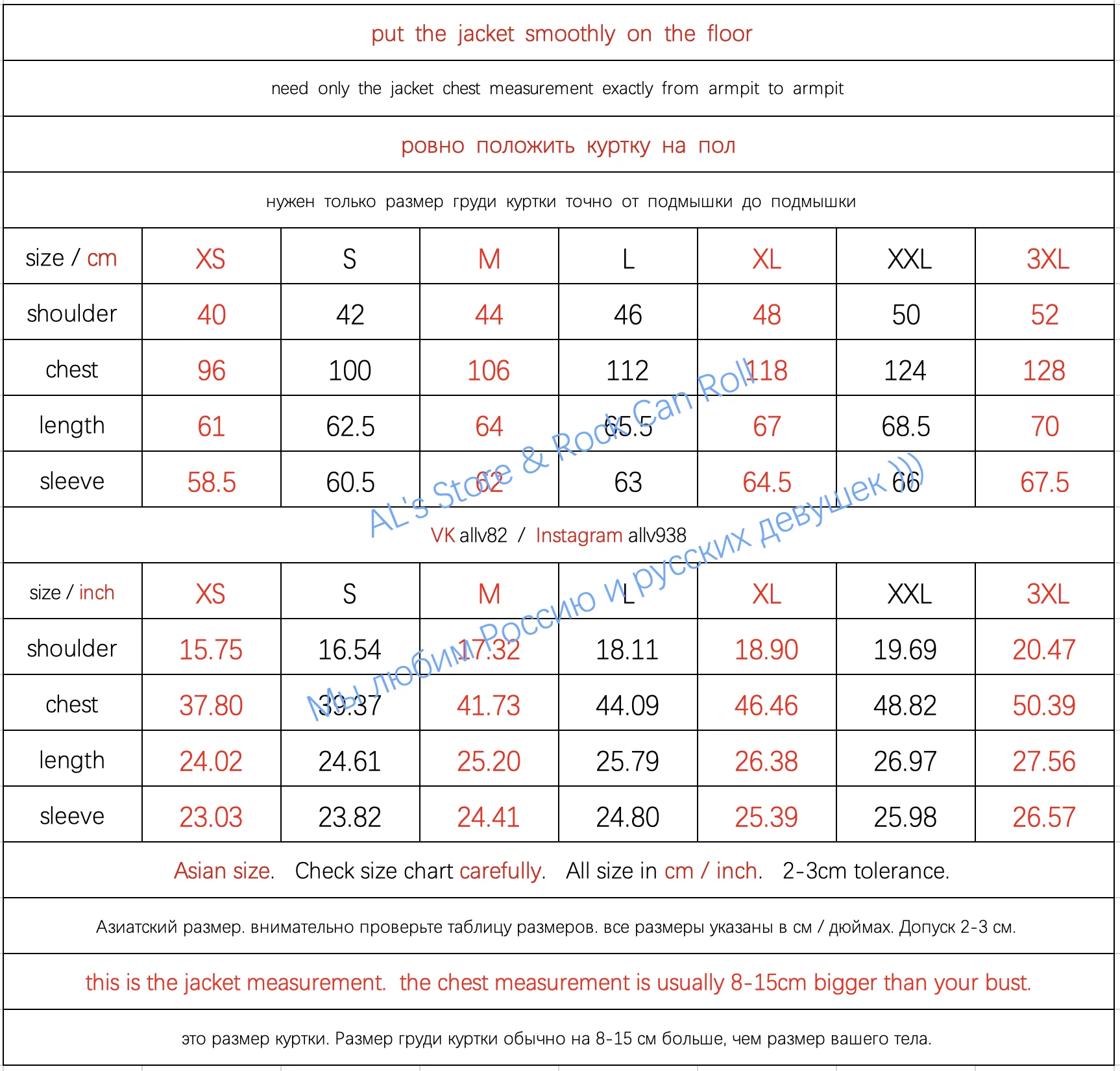 Пожалуйста, выберите вашу куртку, как показано ниже: