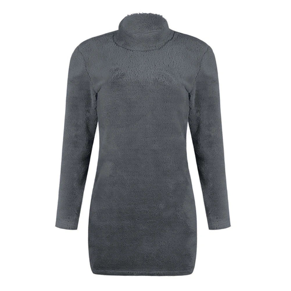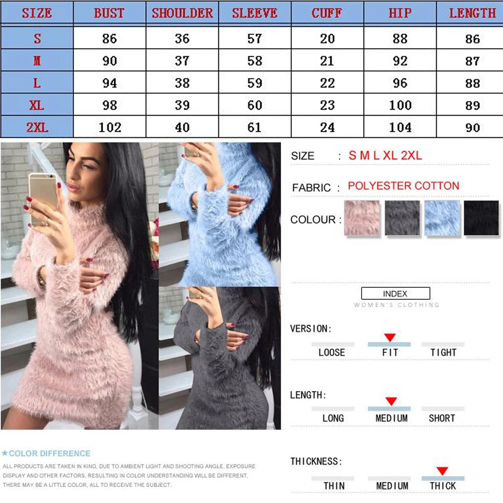 Новое зимнее плюшевое теплое платье-свитер, женские платья с длинным рукавом и высоким воротником, облегающее мини-платье для вечеринки, Облегающее вязаное женское платье