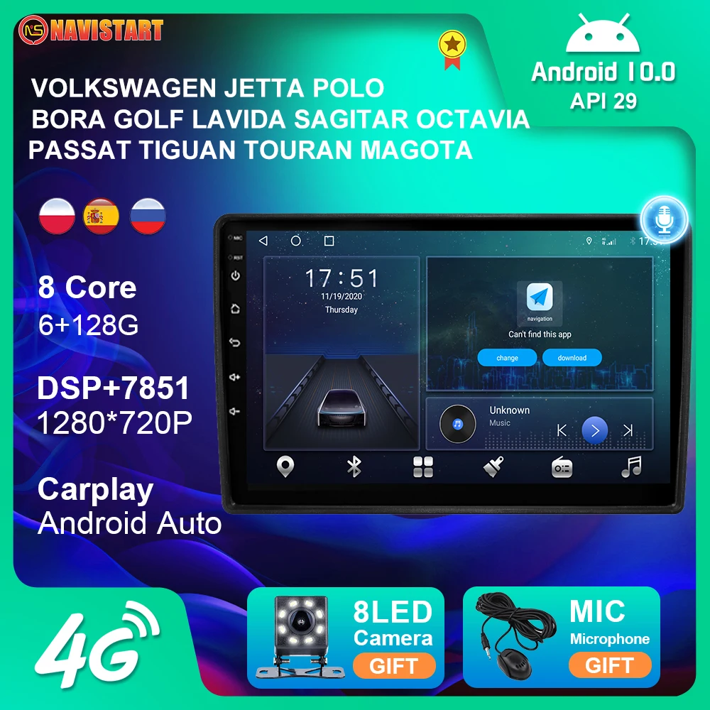 Автомобильный радиоприемник для VOLKSWAGEN JETTA POLO BORA GOLF LAVIDA SAGITAR OCTAVIA PASSAT TIGUAN TOURAN GPS навигация 4G WIFI DVD Android 10