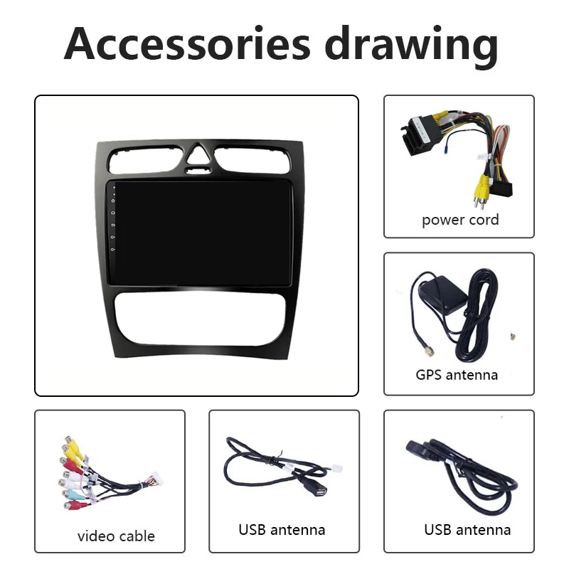 Продукт подходит для: Benz C-Class W203 C200 C320 C350 CLK W209 2002-20051. Поддержка операционной системы: Система Android 11,0.2. Поддержка 6 ГБ RAM.(4 ГБ/2 ГБ/1 ГБ RAM)3. Поддержка 128 ГБ ROM.(64 Гб/32 ГБ/16 ГБ ROM)4. Поддержка 4 /8 ядер ЦП.5. Наш кабель подключен и работает, нет необходимости резать оригинальный автомобильный кабель.Характеристика:1. Поддержка 9 дюймов сенсорный экран2. Поддержка функции воспроизведения и хранения3. Встроенная система gps-навигации.4. Поддержка функции двойной зоны.5. Поддержка воспроизведения видео 1080p.6. Поддерживает высококачественный музыкальный выход.7. Встроенный беспроводной приемник.8. Поддержка usb-входа.9. Поддержка отображения даты и времени.10. Поддерживает Bluetooth музыку и Bluetooth мобильный телефон.11. Поддержка управления папками.12. Поддержка графического интерфейса пользователя.13. Поддержка установки приложений.14. Поддержка функции календаря.15. Поддержка функции камеры заднего хода (опционально).16. Поддержка функции DAB radio (опционально)