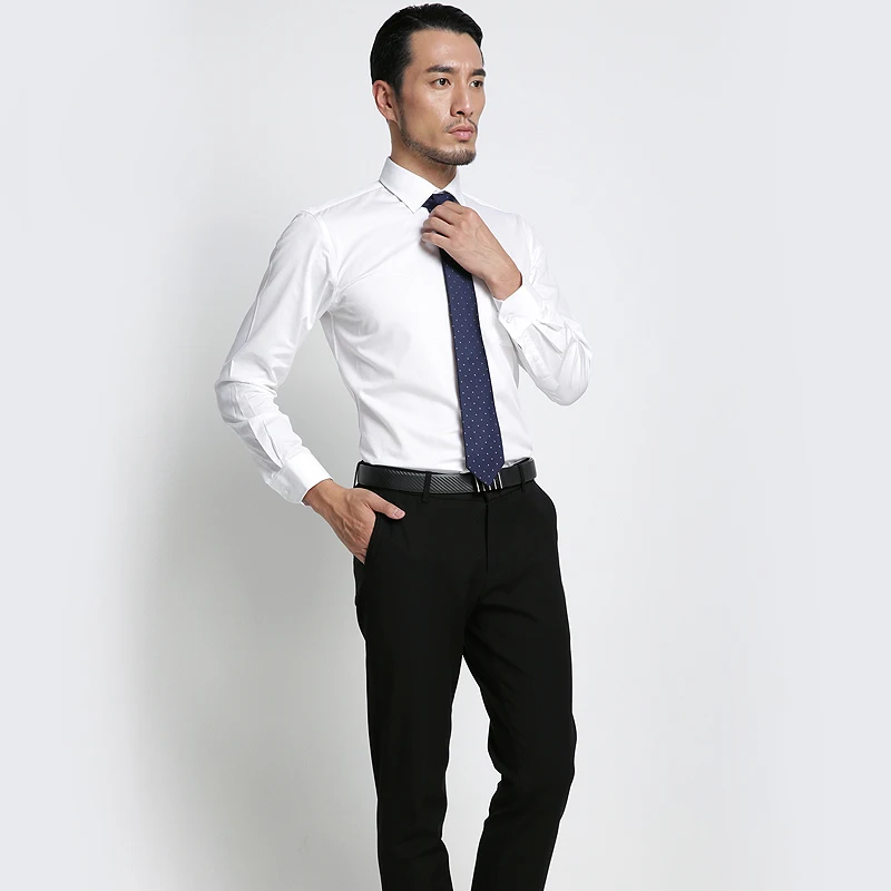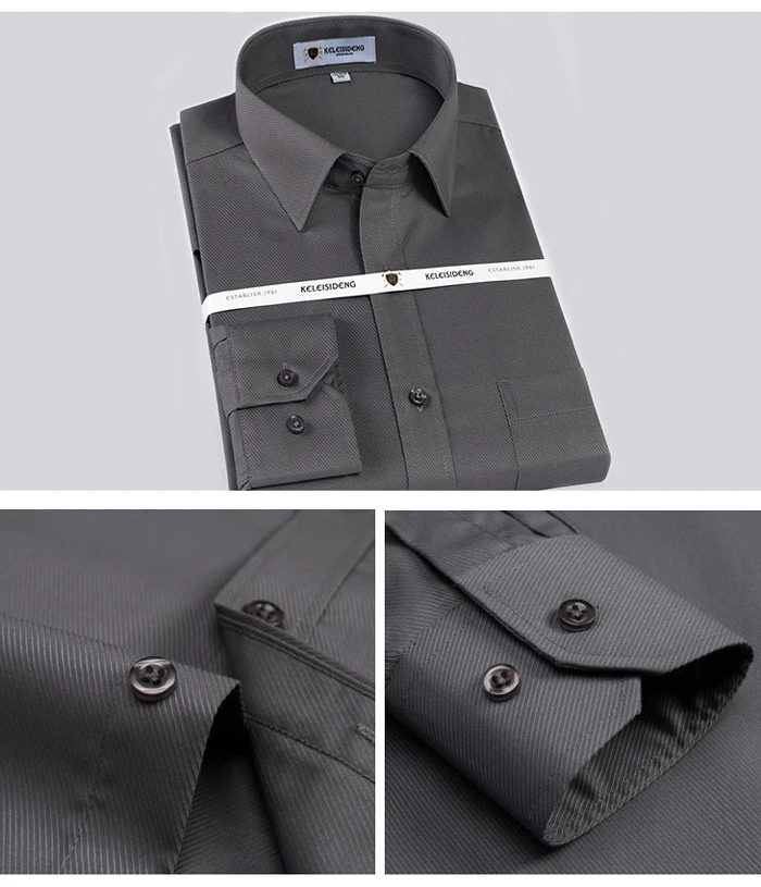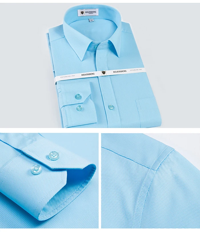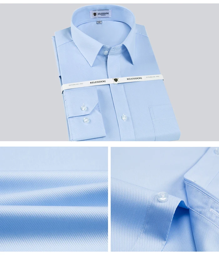 Мужская классическая рубашка с длинными рукавами, однотонная саржевая Классическая формальная деловая рубашка для работы и офиса, с одним накладным карманом, Осень-зима 2019