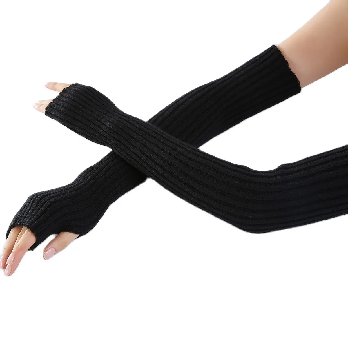 Рукавицы вязаные без пальцев, с рукавом солнцезащитные перчатки, дл...
