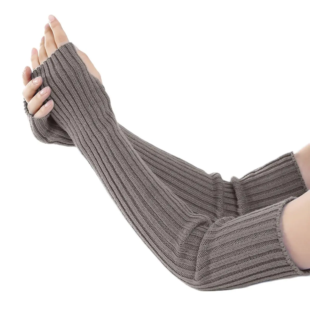 Весенне-осенние вязаные гетры для женщин, теплые тонкие длинные перчатки без пальцев, локоть, варежки для девушек, кролик, принт, рукав