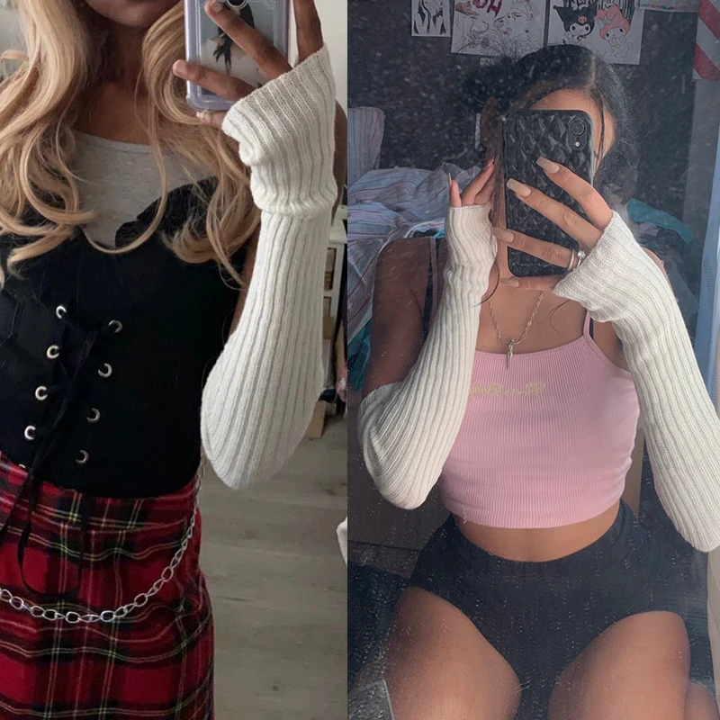 Перчатки вязаные мужские, с рукавами до середины пальца, Y2K, весна...