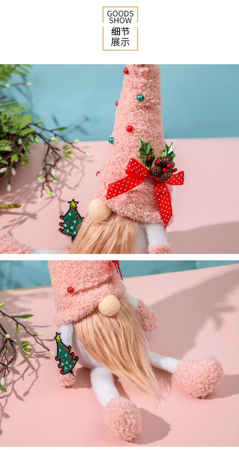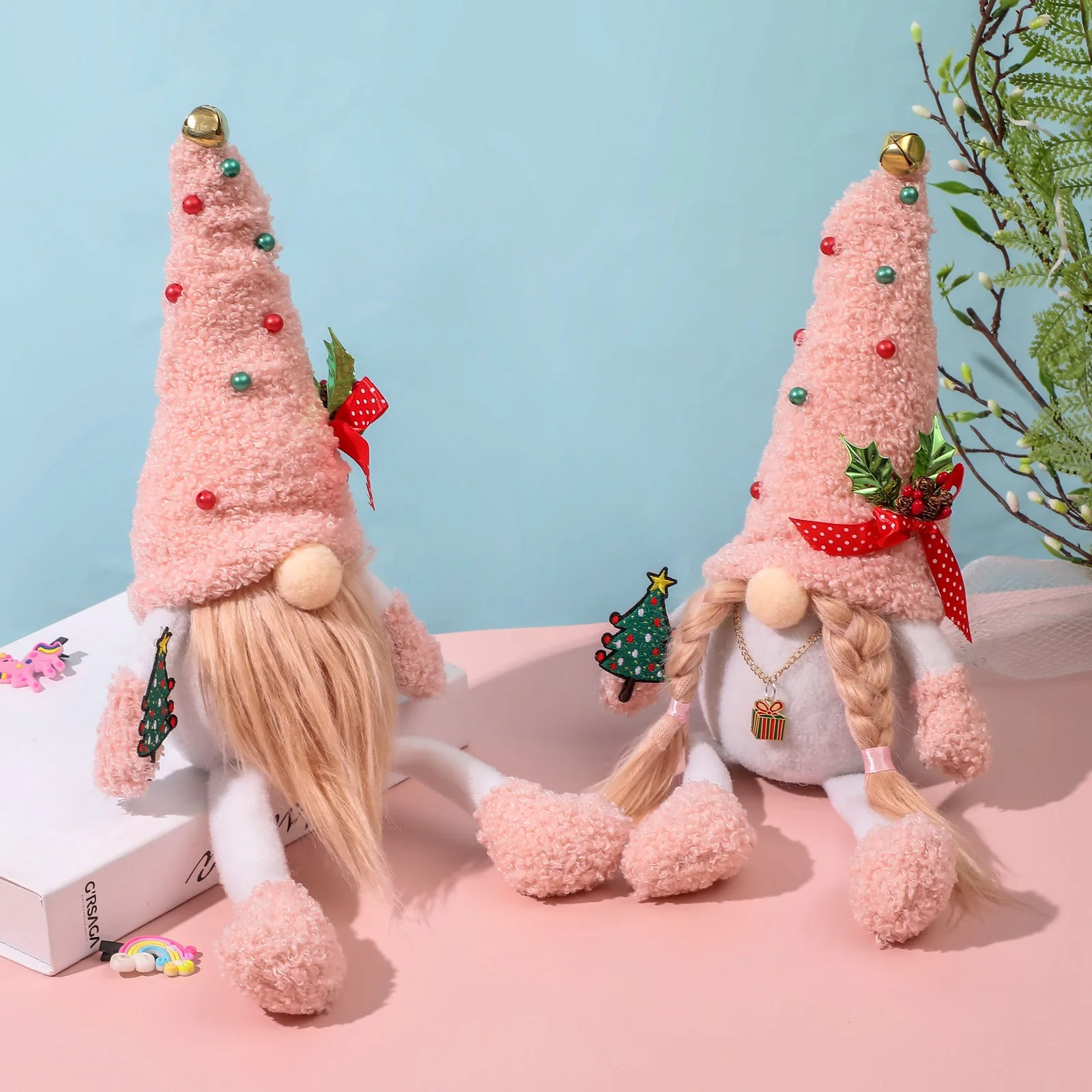 Розовые игрушки, Рождественская вязаная шапка Rudolph, маленькая кукла, креативная Рождественская елка, кукла без лица для девочек, подарки, рождественские подарки
