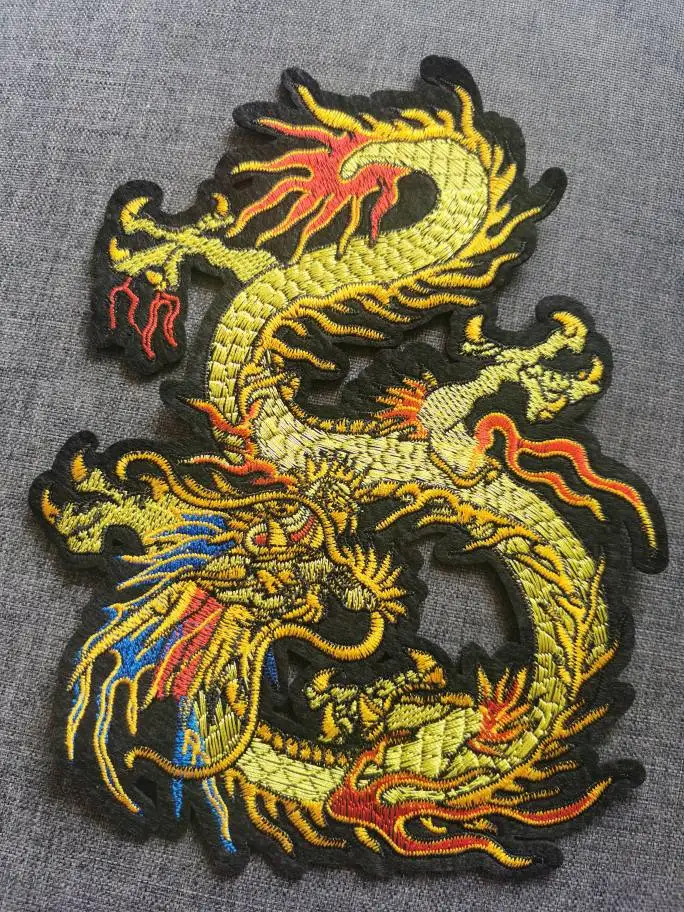 Китайские нашивки с драконом для одежды, Пришивные мотоциклетные вышитые значки в стиле панк с черепом, большая черная искусственная принадлежность