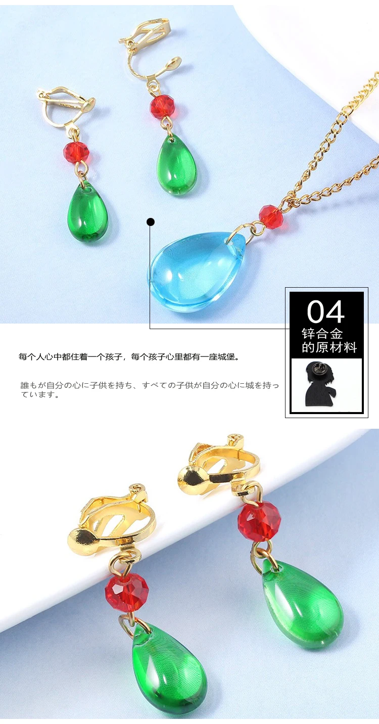 Женские серьги Howl's Moving Castle, зеленые клипсы с кристаллами в...