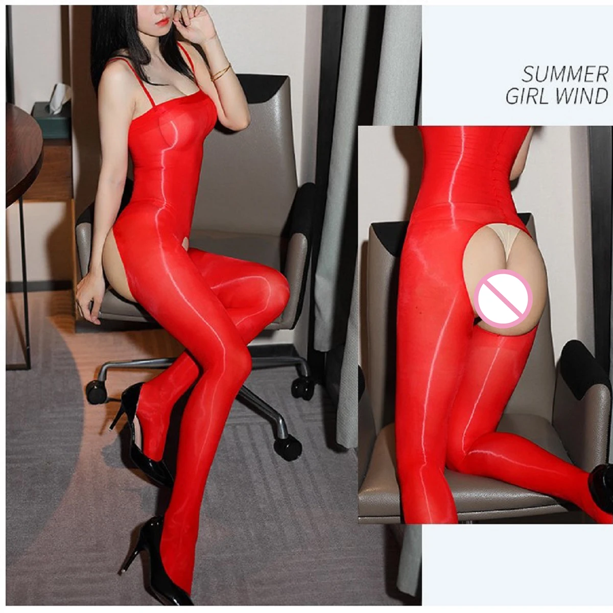 Женские сексуальные блестящие прозрачные колготки с открытой промежностью 8D регулируемый плечевой ремень тонкие подтяжки с открытой промежностью комбинезон боди