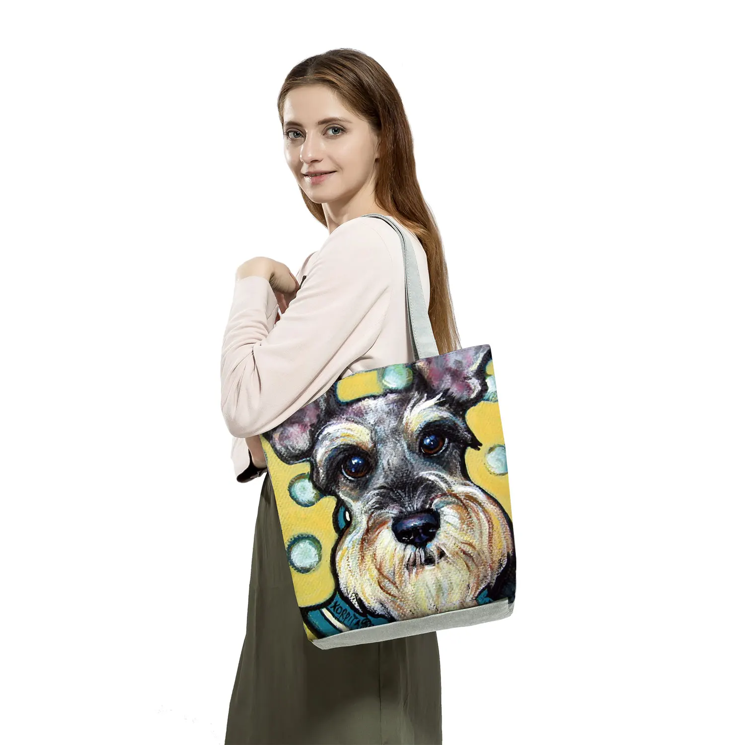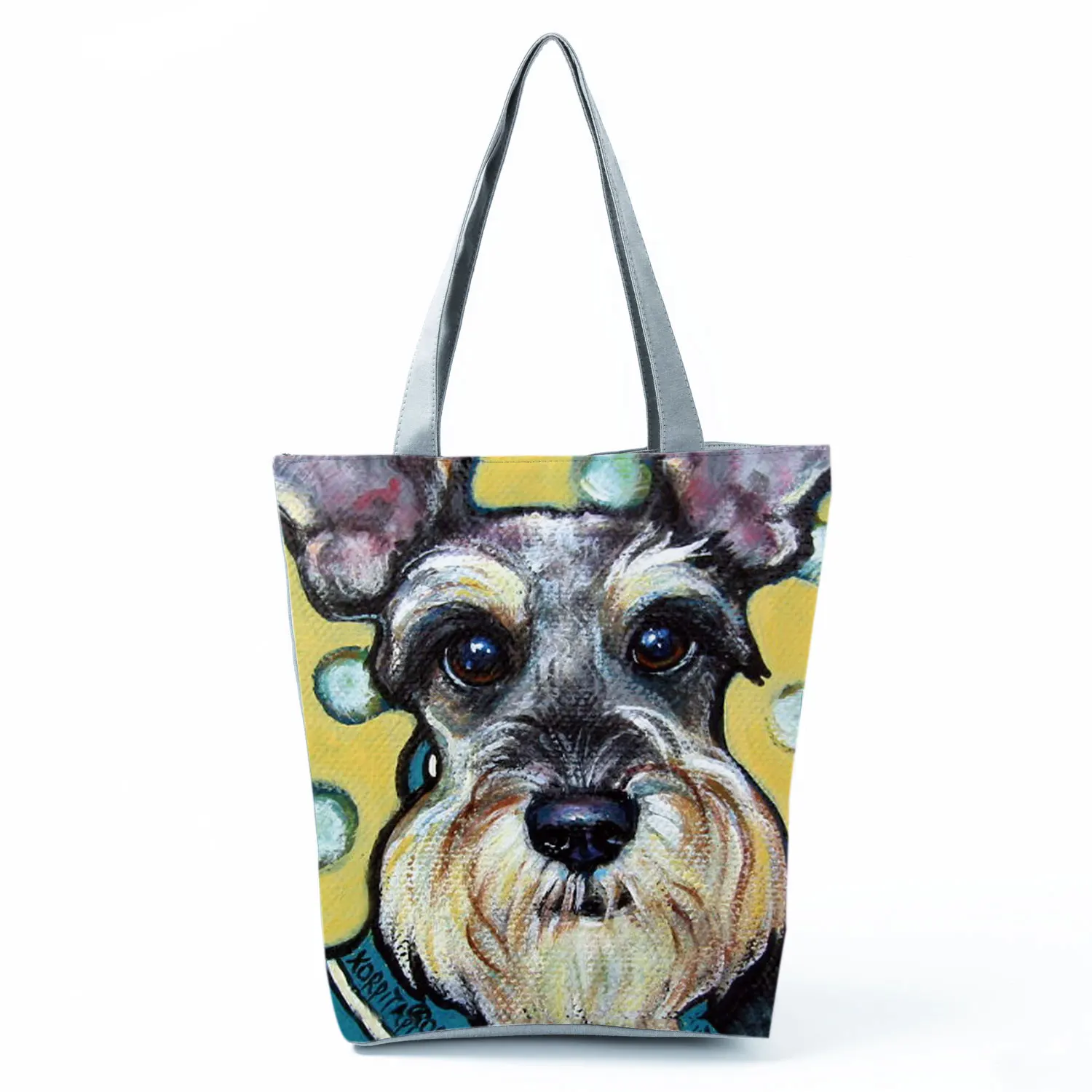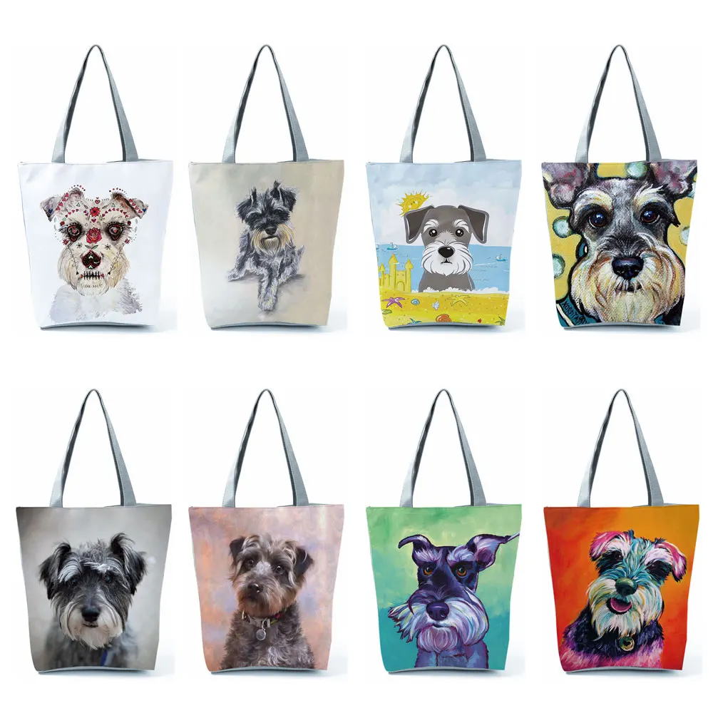 Прямая поставка, Schnauzer, сумки с рисунком собаки для женщин, женская Корейская сумка на плечо, повседневные сумки для покупок, большая вместительность, сумка-тоут